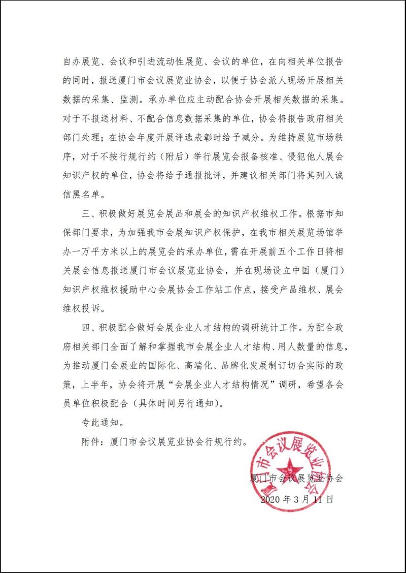 厦门市会议展览业协会行规行约。