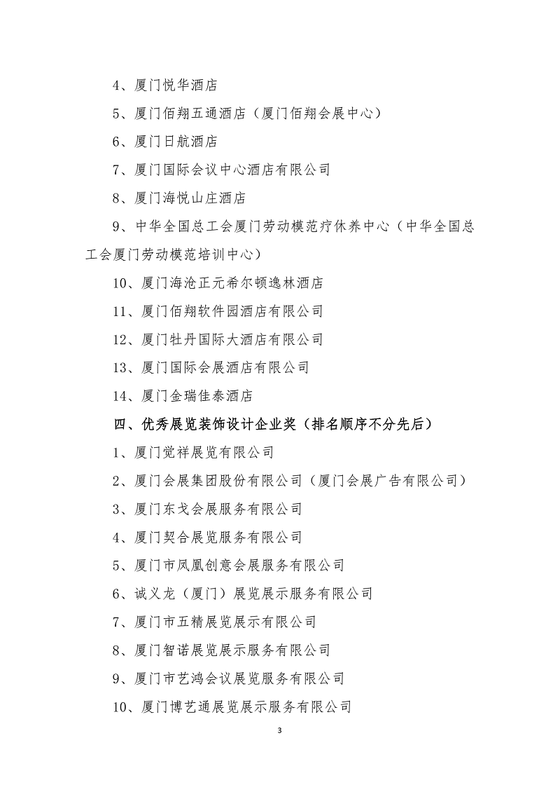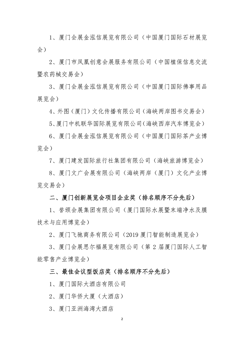 关于厦门市会议展览业协会表彰2019年度会员单位 优秀品牌展会主承办等先进企业评选结果的公示