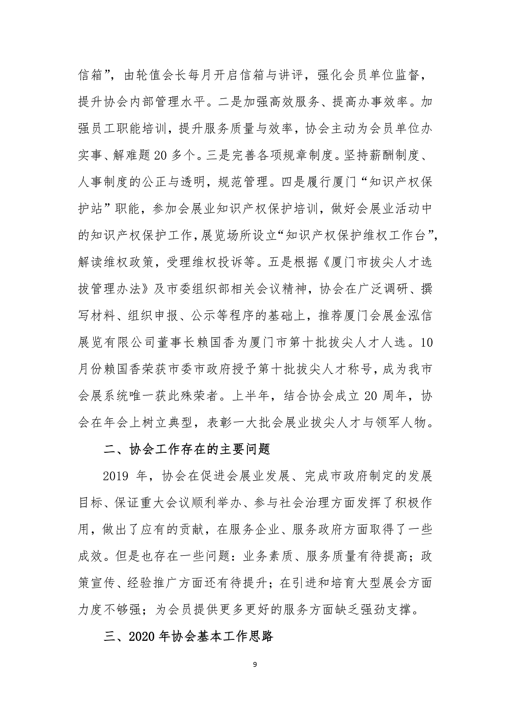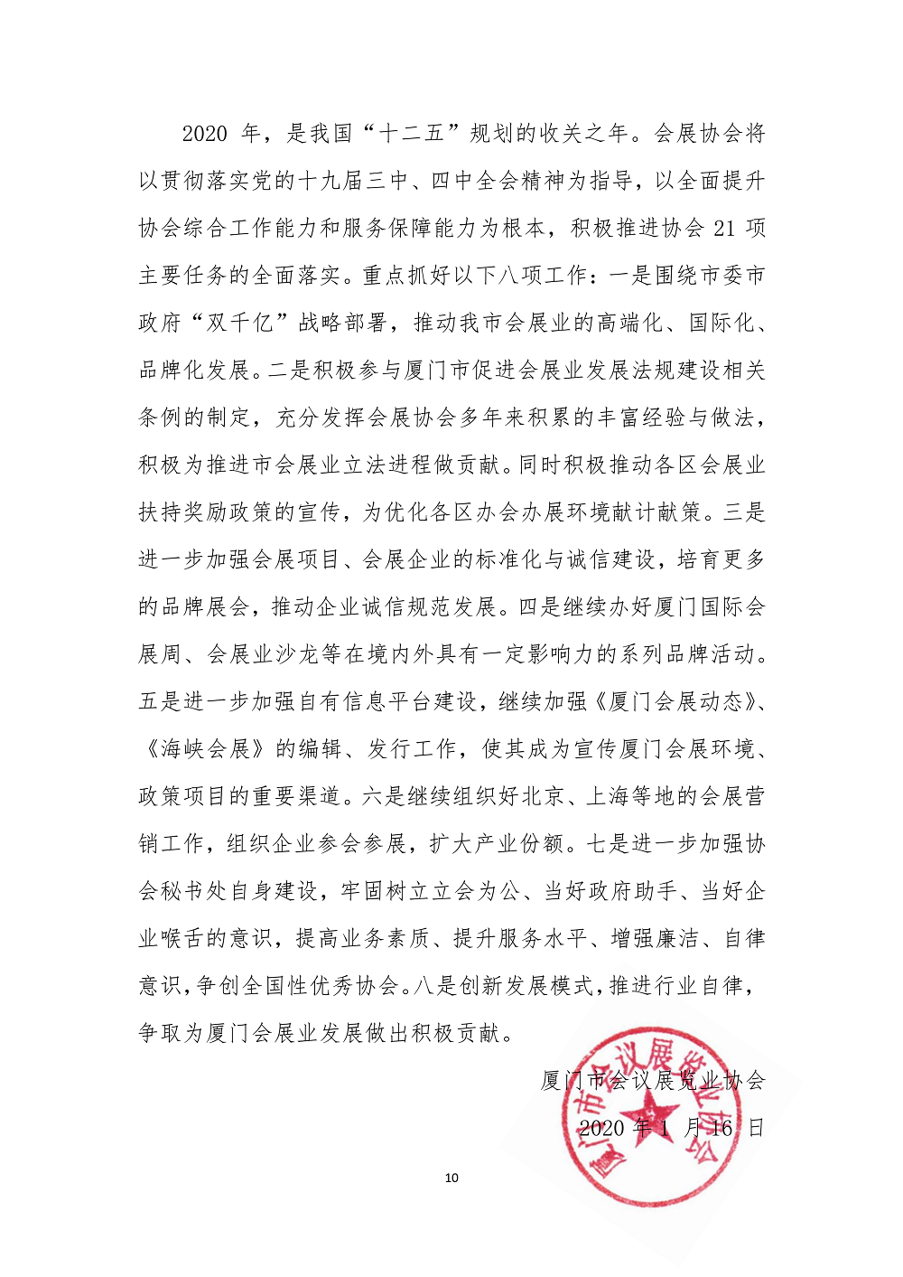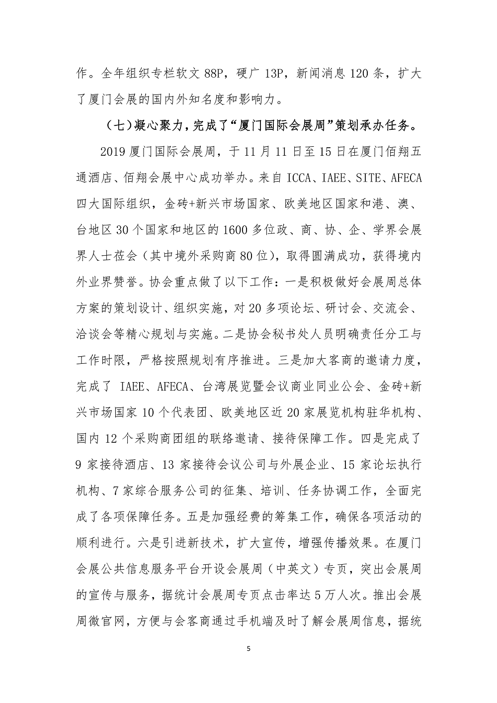 第01号 厦门会展协会2019年度工作总结与2020年度工作思路
