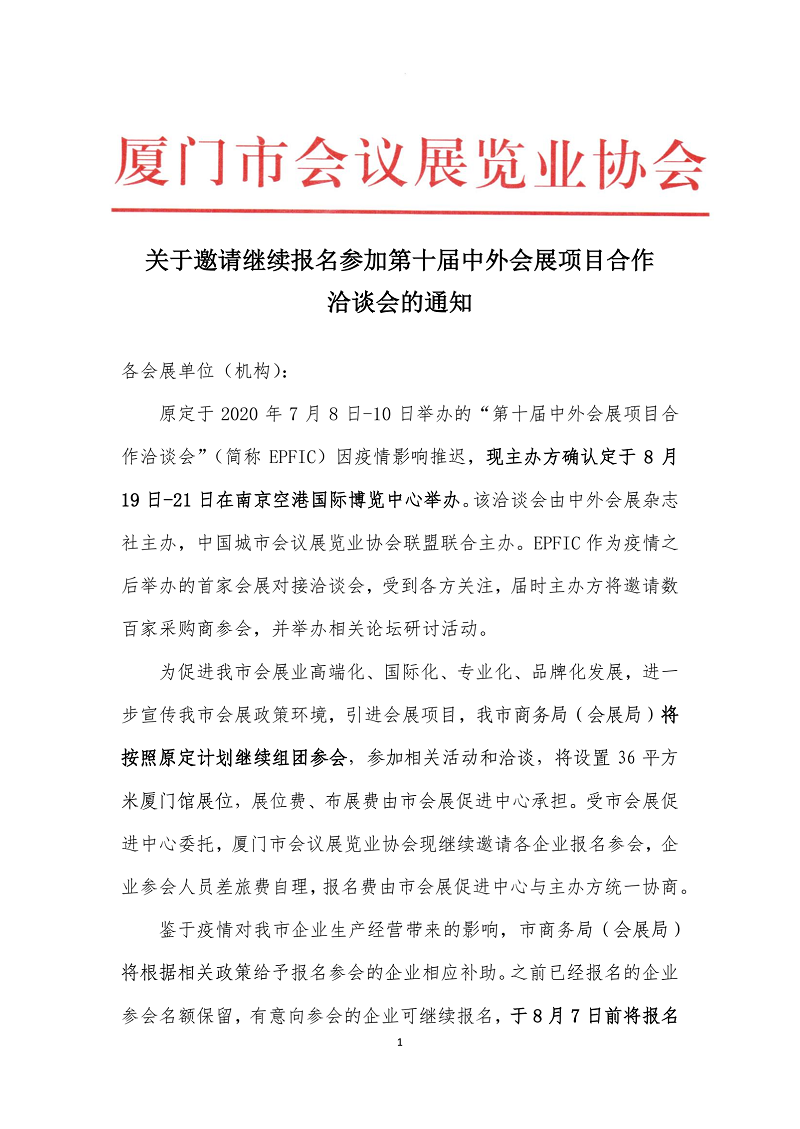 关于邀请继续报名参加第十届中外会展项目合作洽谈会的通知