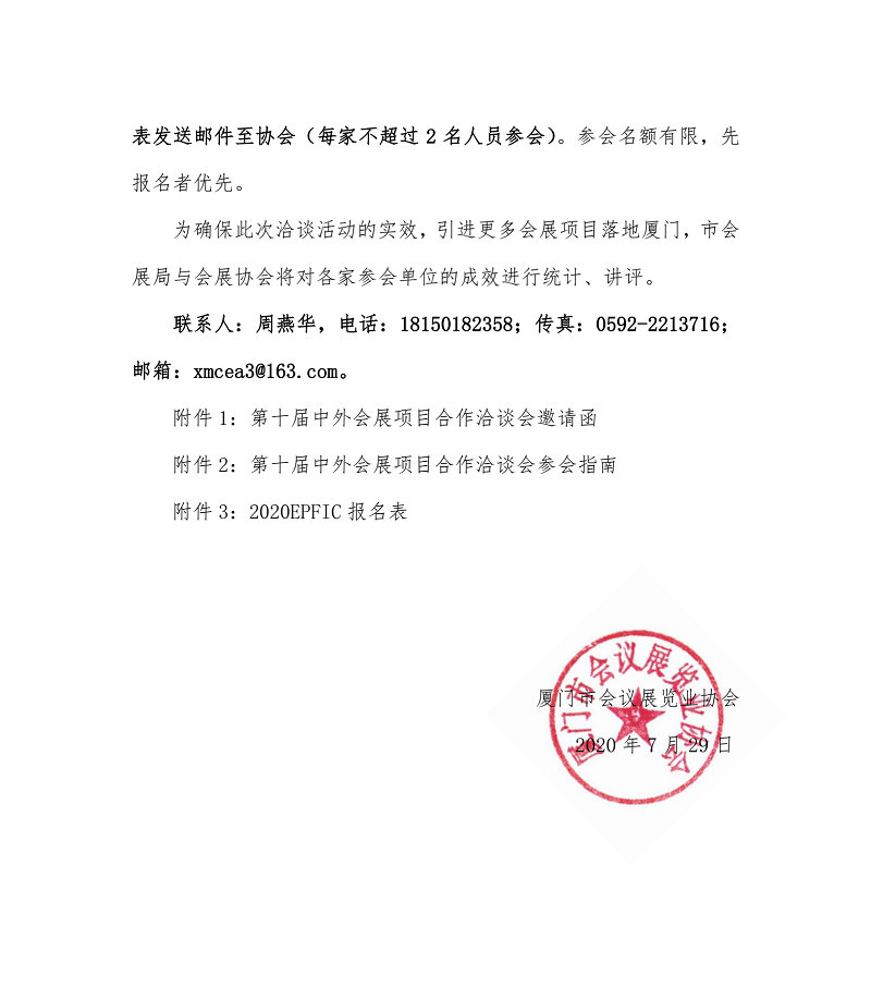指导单位:厦门市会议展览局 主承办单位:厦门市会议展览业协会 联系电话: 86-592-5959074、2213713 电子信箱:xmcea3@163.com