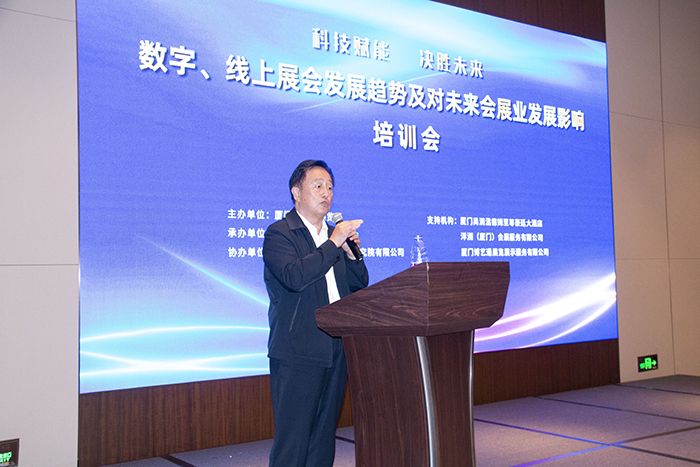 科技创新为会展业发展注入了新的动力,引领和赋能作用日益增大,通过信息技术实现会展业的智能应用和智慧管理,打破会展活动时空的限制,将会展服务质量和运作水平提升到一个新高度。为提升厦门会展企业数字线上展会的知识储备,厦门市会展局、厦门会展协会特地组织了此次培训,活动由市会展协会会长郑智主持,他强调,“在当前社会形势下,我们既要看到新技术、新科技、新思维、新形势对线下会展业发展好的一面及影响,同时也要有危机感,了解其对线下会展活动带来的冲击与分流,未雨绸缪,及时采取措施,才能够更好地进行科技赋能,决胜未来”。
