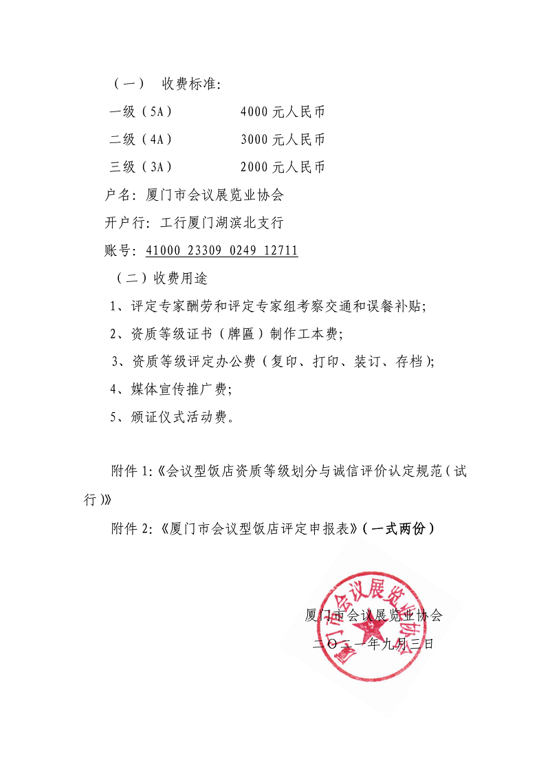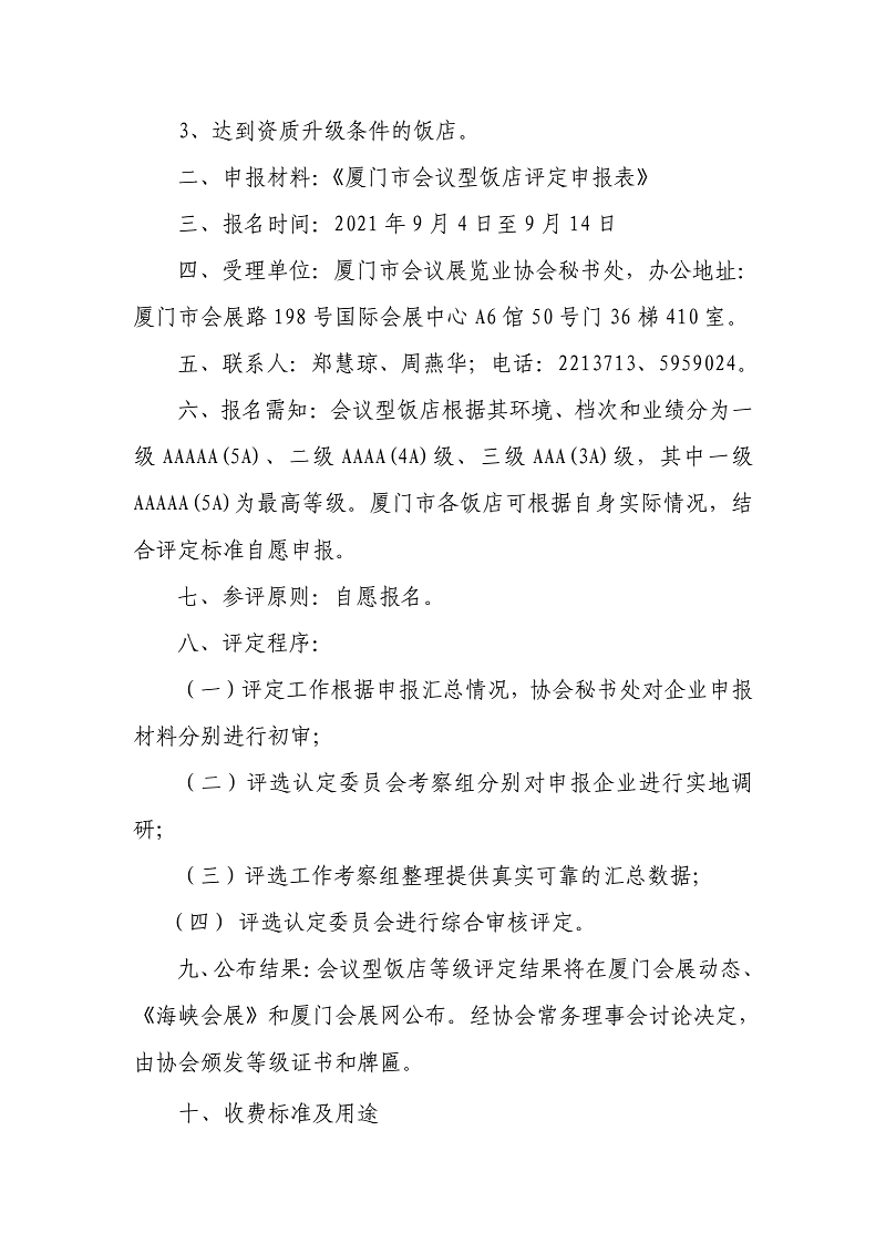 第24号 关于开展2021年度厦门市(第七批)会议型饭店资质等级评定工作的通知
