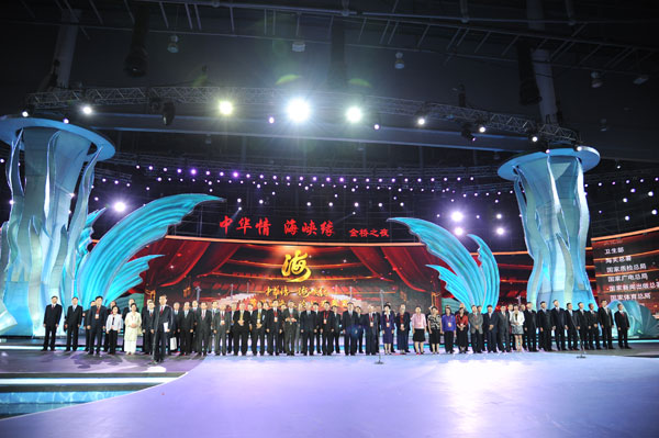 开幕式之后,本届海峡论坛开场歌舞《两岸一家亲》在两岸歌手的歌声中精彩亮相,精彩纷呈的“中华情·海峡缘”综艺晚会热闹登场。李玲玉、周蕙、熊天平、蔡国庆、任贤齐、汪峰等两岸演员接连登台献艺,给现场的两岸来宾和观看晚会电视直播的观众,带来了一场充满浓浓民族情谊的视听飨宴。