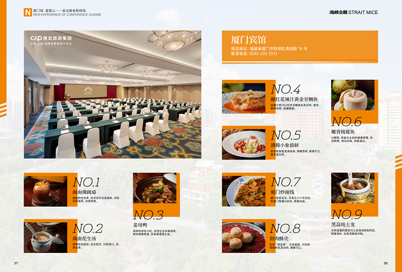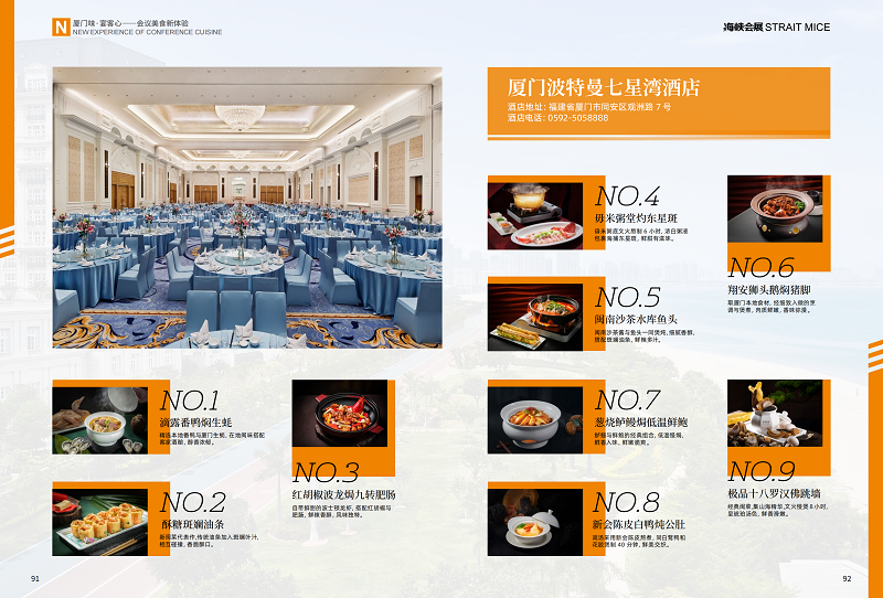 会议型饭店不仅是商务交流的重要场所,也是美食文化的聚集地。在这里,您可以享受到一流的会议设施和服务,同时也能品尝到地道的美食佳肴,让您的味蕾在商务和休闲之间得到完美的融合。 本期,我们将一同走进厦门波特曼七星湾酒店、厦门海景洲际酒店、厦门宾馆、厦门海悦山庄酒店、厦门国际会展酒店、福州海瀛湾佰翔酒店、漳州佰翔圆山酒店、晋江佰翔世纪酒店、龙岩佰翔京华酒店,体验闽南美食传统与国际烹艺的和谐交融。