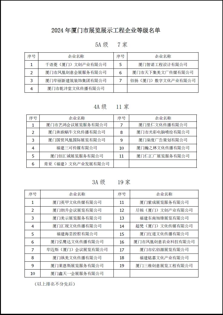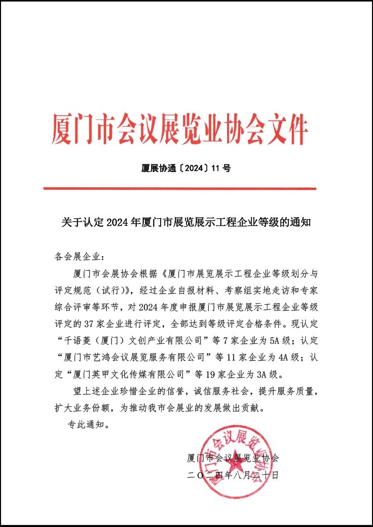 关于认定2024年厦门市展览展示工程企业等级的通知