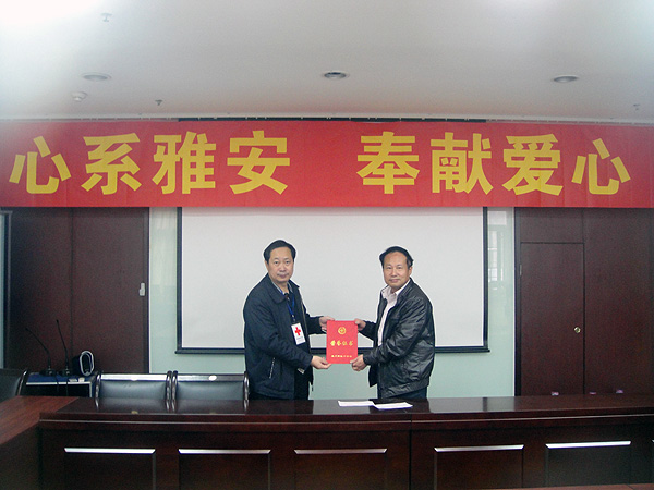 4月20日上午8时02分,四川省雅安市芦山县突发7级地震,给灾区人民造成了重大生命和财产损失。关注地震,关注雅安,关注灾区。盈拓发出倡议,号召公司员工为地震灾区人民捐款并开展爱心捐款活动,得到了积极响应和踊跃捐款。公司林广远总经理当即慷慨捐款20000元。截止4月26日12时,捐款金额达到27850元。当天下午,盈拓党支部陈培成书记代表公司及全体员工至厦门市红十字基金会,将款项递交给市红十字会周敏副会长,以实际行动关怀、帮助灾区。盈拓公司的善举获得了厦门市红十字会和红十字基金会的赞赏与表彰。