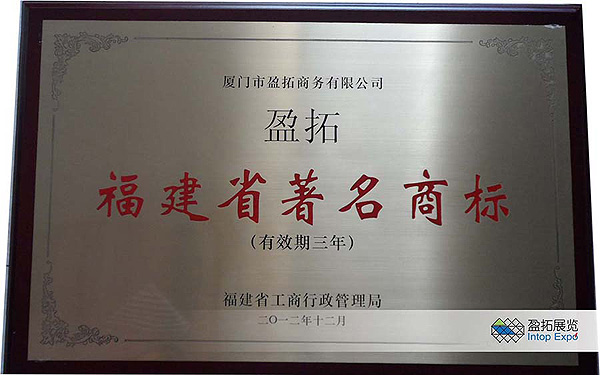 经福建省工商行政管理局认定委员会认定,厦门市盈拓商务有限公司“盈拓”商标获评为“福建省著名商标”。这不仅是对盈拓服务品质与品牌的肯定,更是对盈拓十几年来追求“诚信、效率、活力、细心” 的企业精神,“您只管专注您的业务,把后勤工作交给我们”的服务信念的嘉奖,是消费者和市场给予的宝贵荣誉。