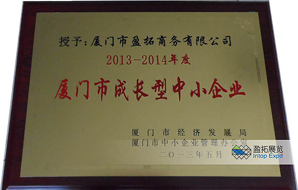 ![]() ![]() 2013年5月,厦门市经济发展局、厦门市中小企业管理办公室授予厦门市盈拓商务有限公司“2013-2014年度厦门市成长型中小企业”荣誉称号,这是盈拓公司第二次获此殊荣。再度获评“厦门市成长型中小企业”,是厦门市政府部门对盈拓公司十三年的奋斗成长历程的肯定,也是对全体盈拓员工的肯定,同时将鼓舞全体盈拓人继续发扬【诚信、效率、活力、细心】的企业精神,投身于新一轮前进道路中!