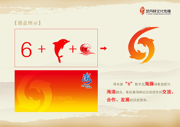 第六届海峡论坛的特色标识引起了众多与会嘉宾的关注。据标识设计方厦门艺丹祥文化传播公司创意总监江邦华介绍,标识中两只环抱嬉戏的海豚,既构成了数字“6”造型,突出体现了第六届海峡论坛的重要性,又像一朵海浪,充分表达了“两岸一家亲”及和谐发展的理念,象征海峡论坛促进民间交流、合作、发展的历史使命。