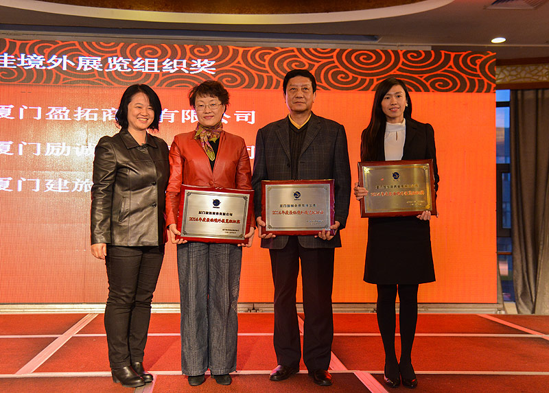 2月5日下午,厦门市会议展览业协会2014年度总结表彰暨第三届七次会员大会在厦门牡丹国际酒店隆重召开,市旅游局副局长、会展局局长王琼文、商务部投洽会驻厦办主任韩青、市社会组织促进会会长刘光彩、市会展政策咨询顾问、长期与市会展协会合作的新闻媒体及市会展协会会长、副会长、会员单位的负责人与代表出席了大会。与会领导为获奖单位和个人颁发了奖牌。
