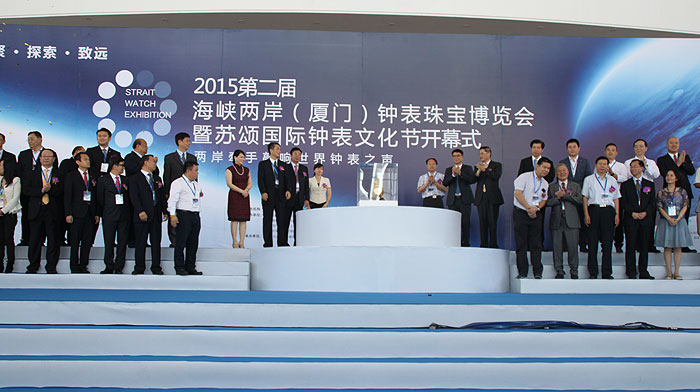 ![]() 5月15日,2015年第二届海峡两岸(厦门)钟表珠宝博览会暨苏颂国际钟表文化节在厦门国际会展中心隆重开幕,本次博览会由中国钟表协会、厦门市人民政府、中华全国工商业联合会金银珠宝商会指导,厦门市钟表协会和台湾钟表工业同业公会主办,厦门市宝玉石协会联合主办,国内各个钟表行业协会,台湾、香港及东南亚地区各个钟表协会共同协办。