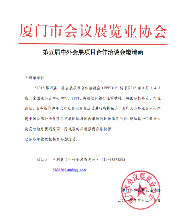 第五届中外会展项目合作洽谈会邀请函