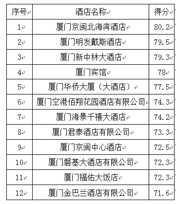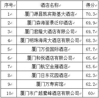 厦门市会议展览业协会根据《厦门市会议型饭店评选认定工作实施方案》,自2015年5月开始在全市饭店系统实施创建会议型饭店评定工作, 41家酒店报名参与了此次评定活动。经过酒店自报材料、考察组实地核查和专家综合评审(15位专家参评,扣除最高分与最低分,得出平均分),厦门悦华等32家饭店达到了申报等级条件,其中10家达到5A级,12家达到4A级,10家达到3A级。厦门罗约海滨温泉酒店、厦门维洛拉大酒店、厦门广莱酒店有限公司、厦门探索酒店、厦门怡翔华都酒店、金桥花园酒店、厦门合佳酒店、厦门香草园酒店等8家酒店由于开业时间较短、会议室数量、设施配备等原因未达到会议型饭店的标准;厦门银海蓝酒店由于新开业,安检设施还未办妥,未予评定。现将评定结果公示如下。公示时间从2015年9月12日至2015年9月18日,若对上述酒店等级无质疑,将正式确认授牌。联系电话:0592-2213713,郑小姐。 5A(AAAAA)级 10家