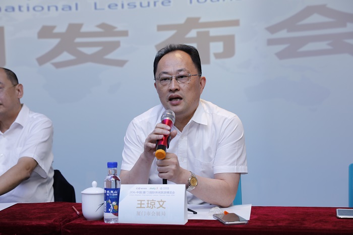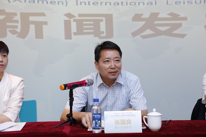 厦门建发国旅集团董事长(兼CEO)陈丽霜女士发言 厦门市旅游局张国良局长在会上表示:中国(厦门)国际休闲旅游博览会作为建发国旅集团为厦门搭建的绝佳平台,推动了休闲旅游产业发展,不仅符合国家政策,也是厦门市委市政府努力的方向。希望能通过精彩纷呈的活动,更好地嫁接厦门休闲旅博会的境内外客商资源,全面营销厦门旅游资源,促进产业对接和项目招商,进而做大做强厦门旅游产业,助力于厦门旅游国际化。也希望,全市的旅游企业能够踊跃加入这个平台,共同向厦门旅游会展千亿产值目标努力。