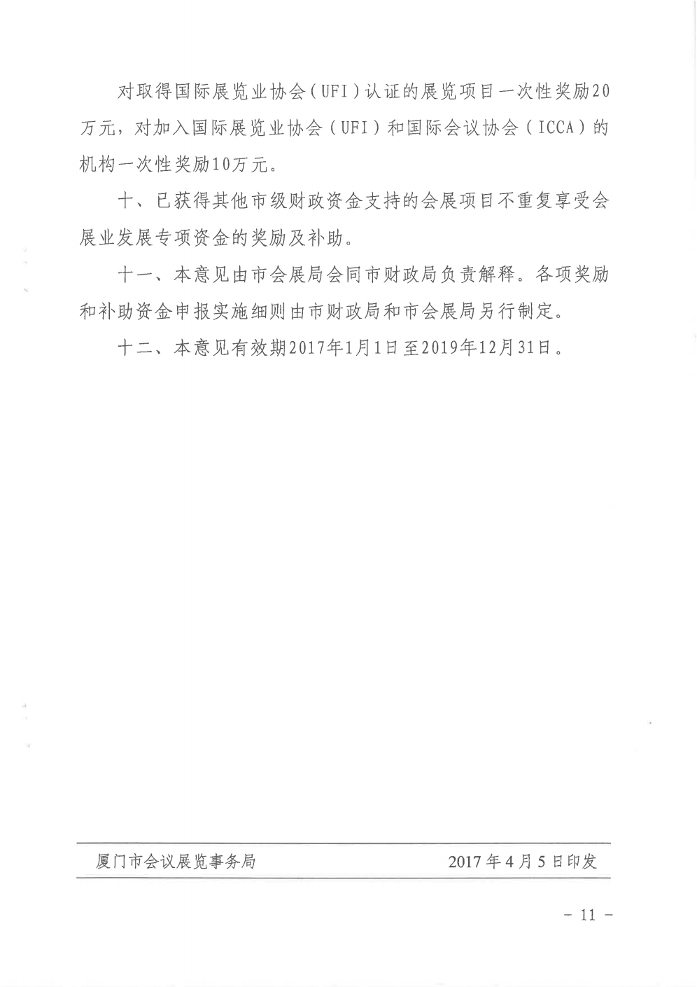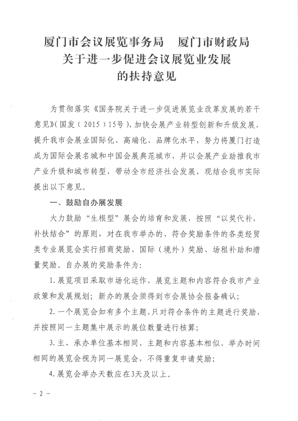 关于印发《关于进一步促进会议展览业发展的扶持意见》的通知(厦会展〔2017〕24号)