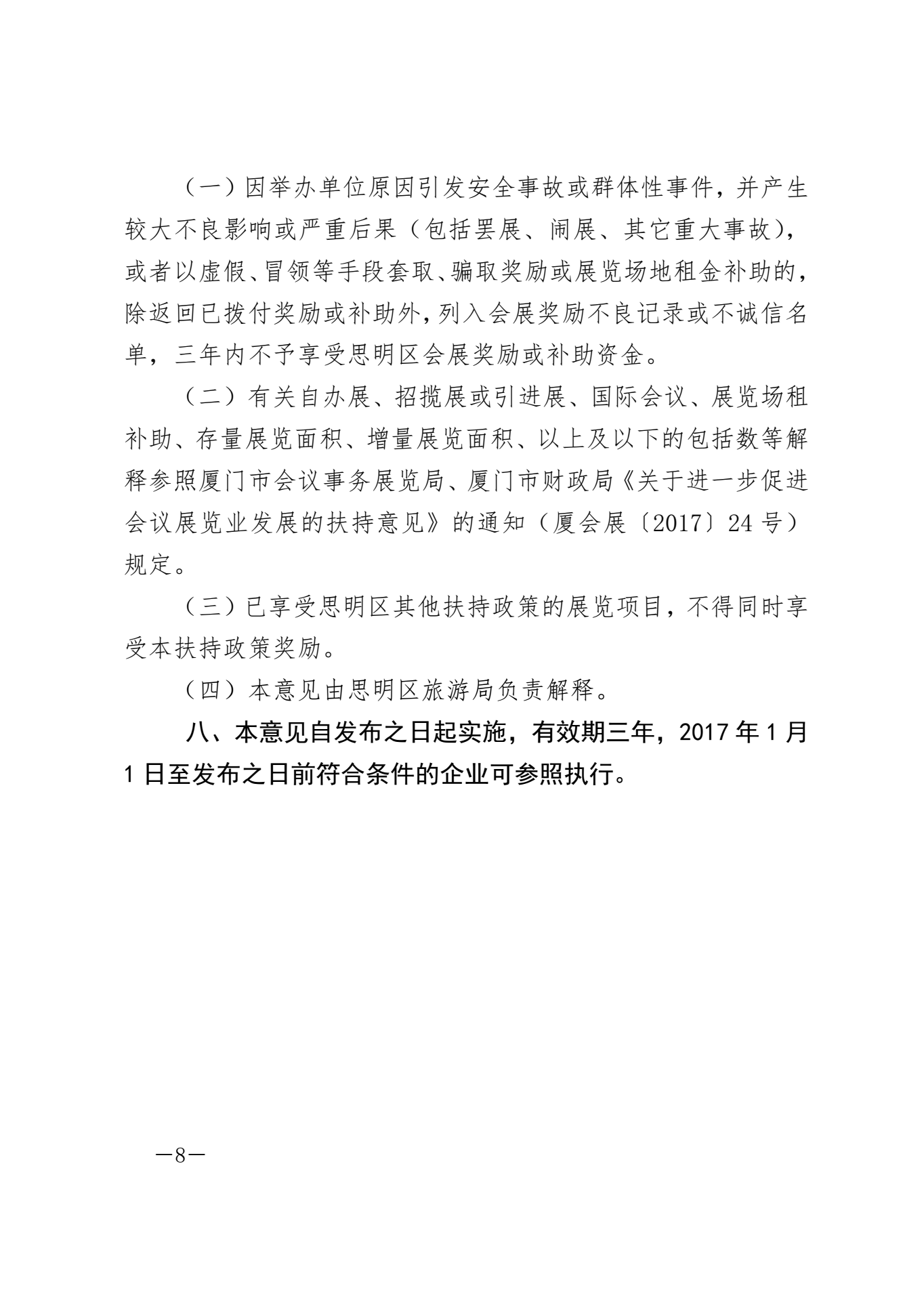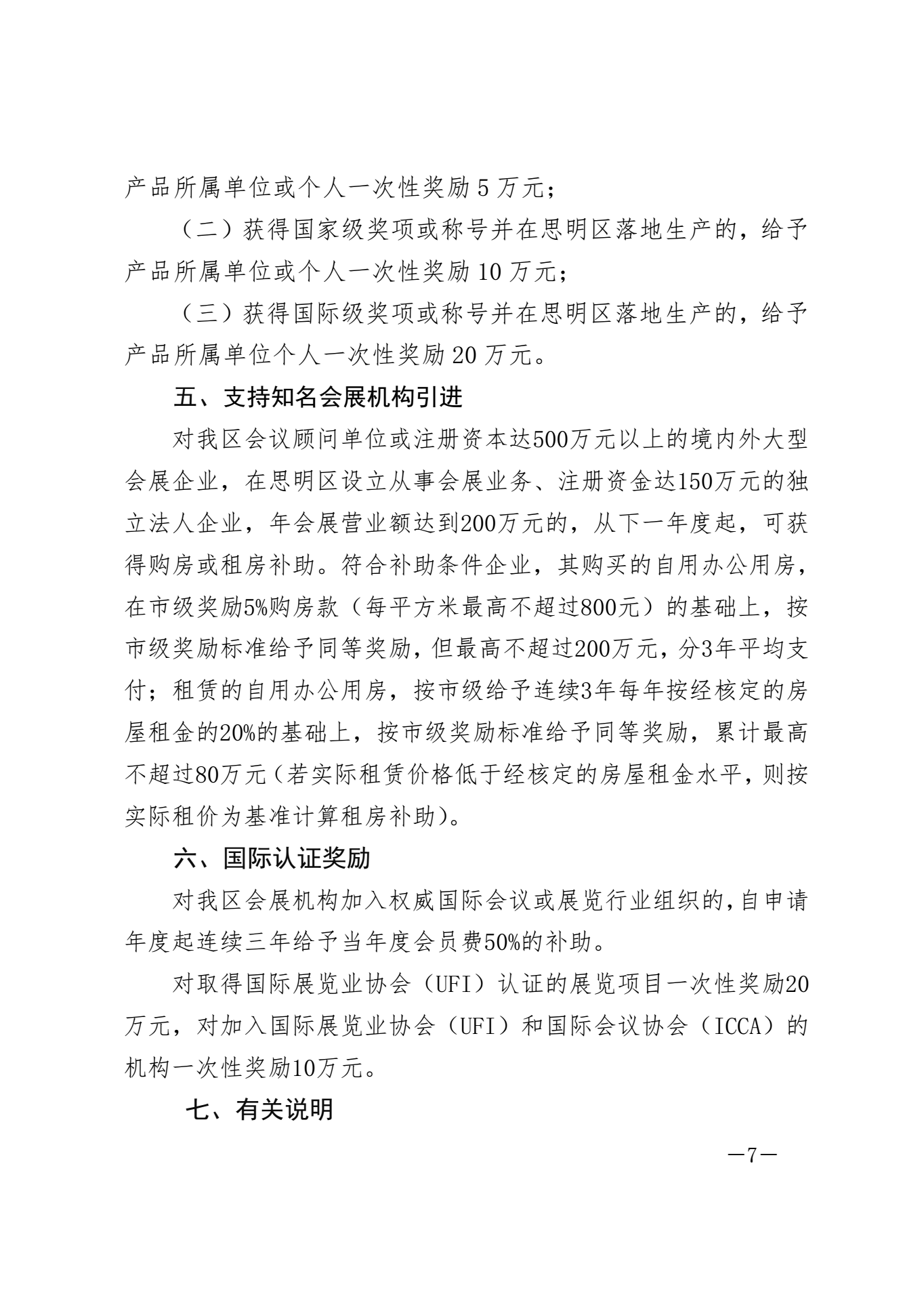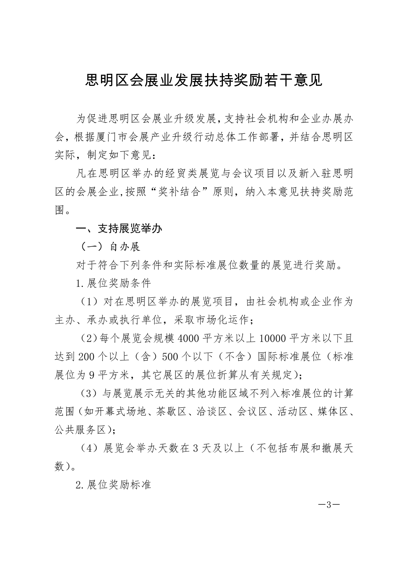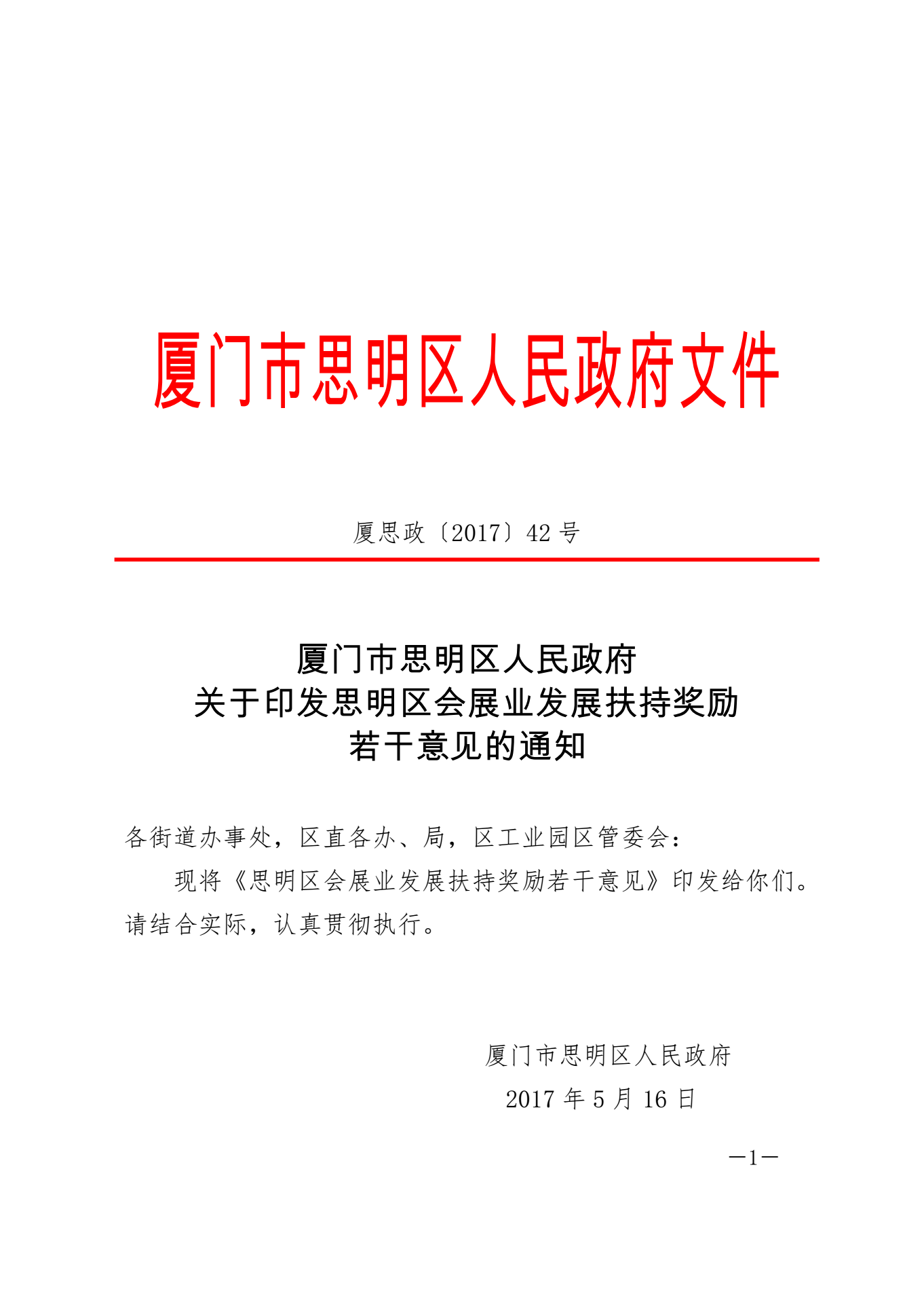 厦门市思明区人民政府关于印发思明区会展业发展扶持奖励若干意见的通知(厦思政〔2017〕42号)