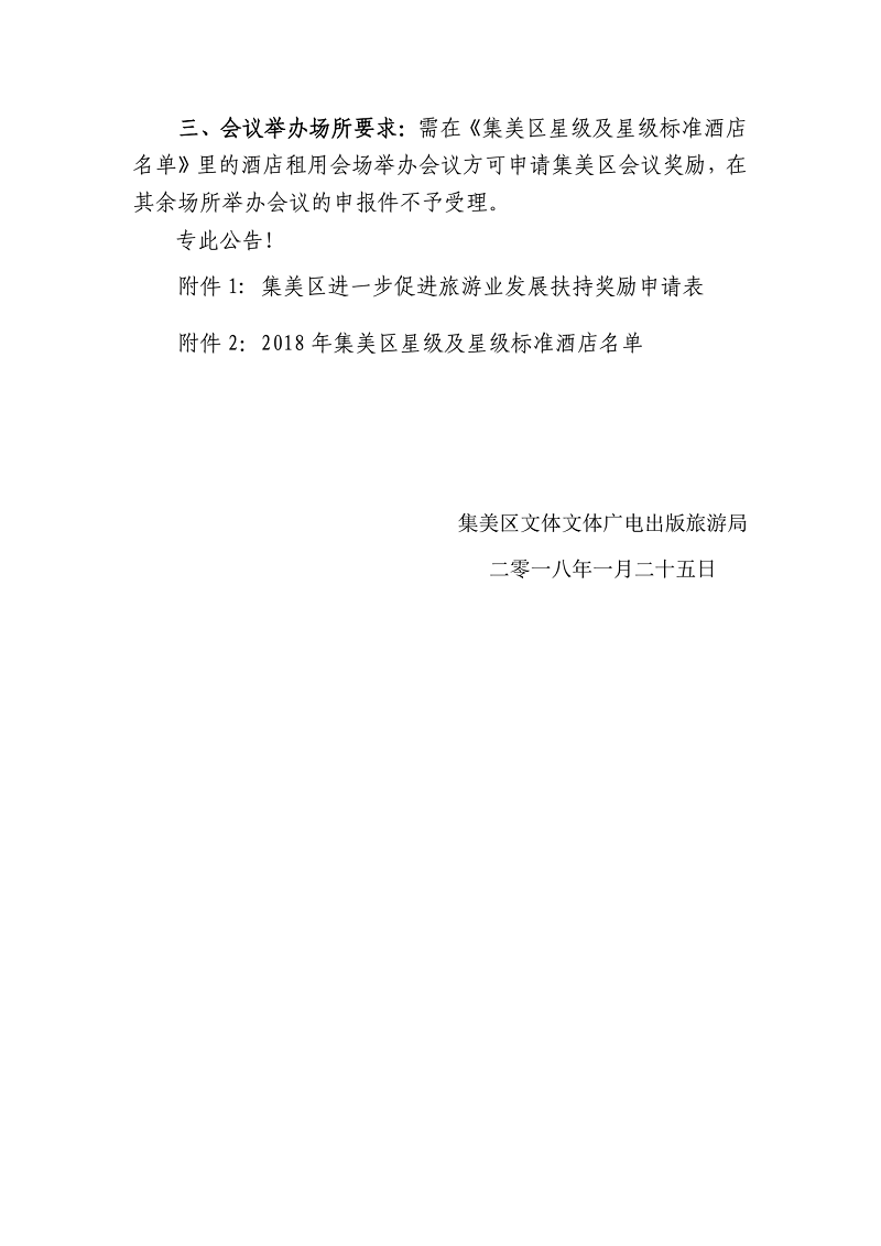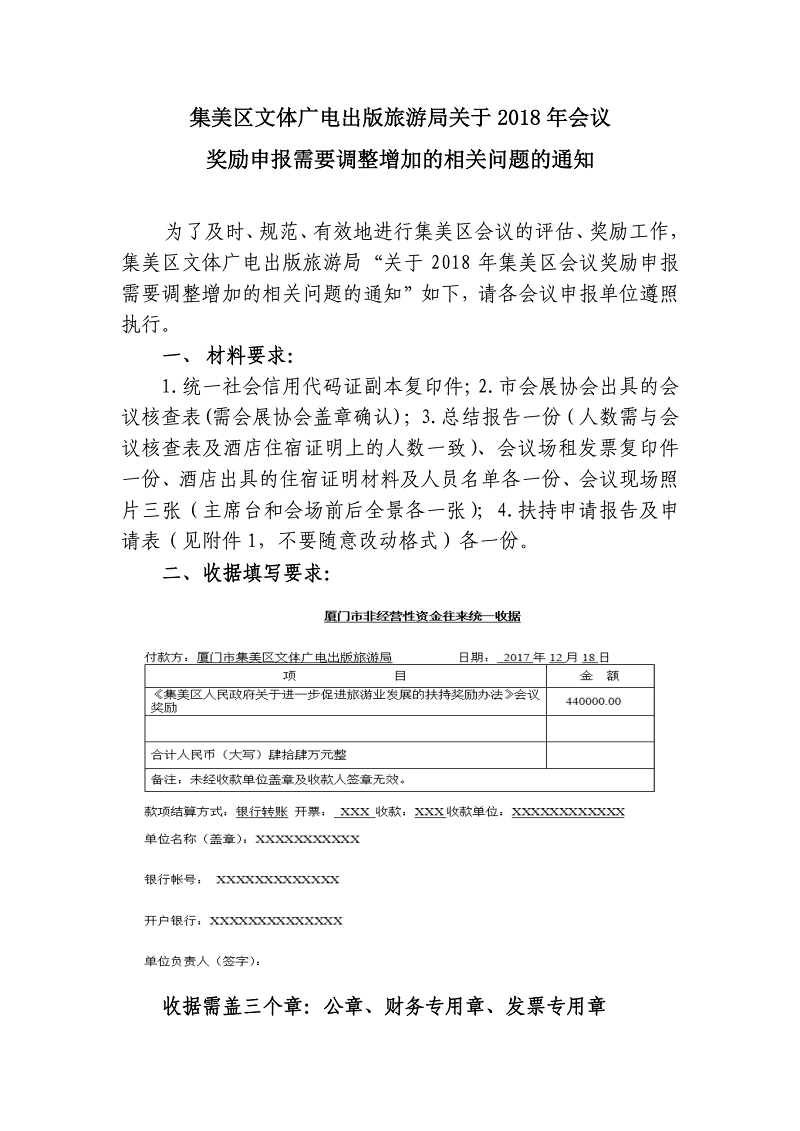 集美区文体广电出版旅游局关于2018年会议 奖励申报需要调整增加的相关问题的通知