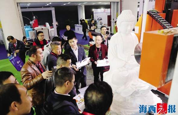 ![]() 石材展上展出的立体雕刻机吸引许多客商参观了解。