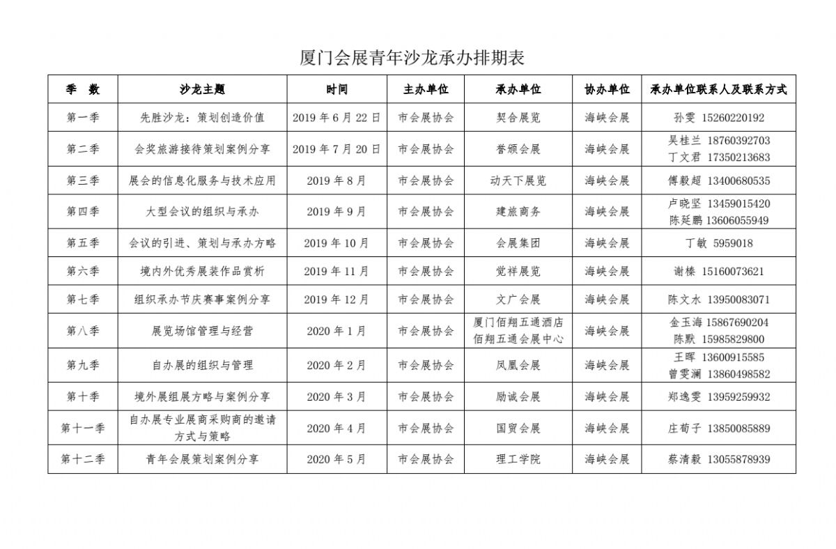厦门会展青年沙龙承办排期表