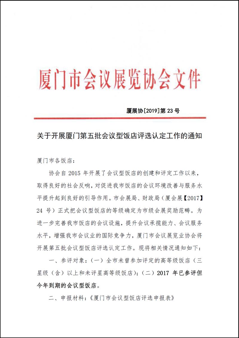 关于开展厦门第五批会议型饭店评选认定工作的通知