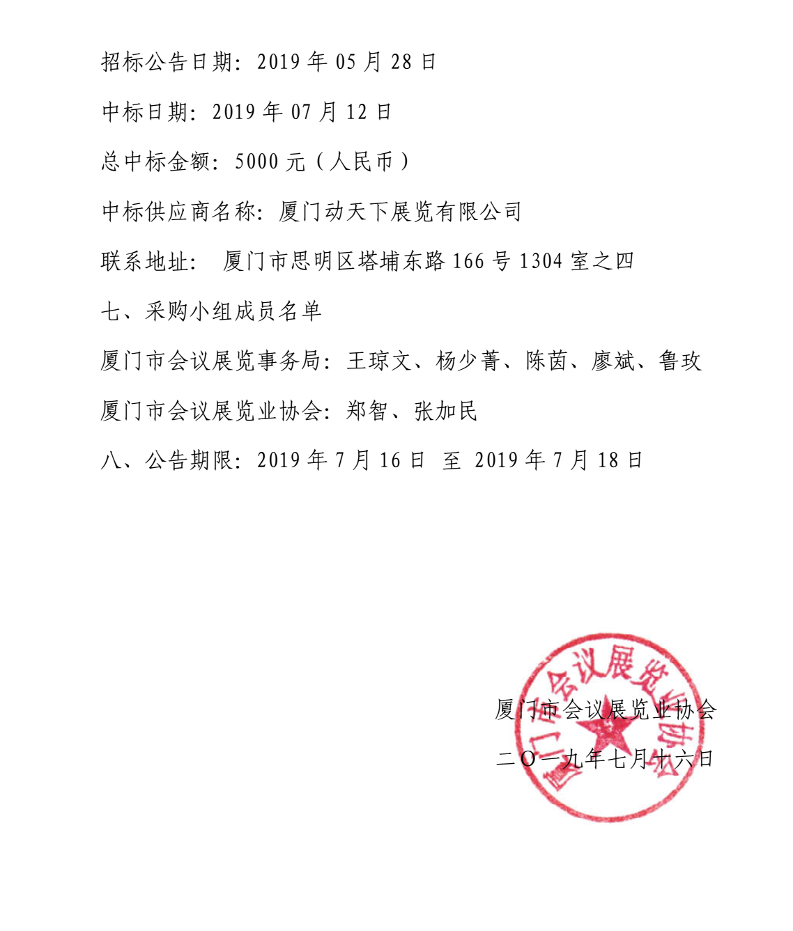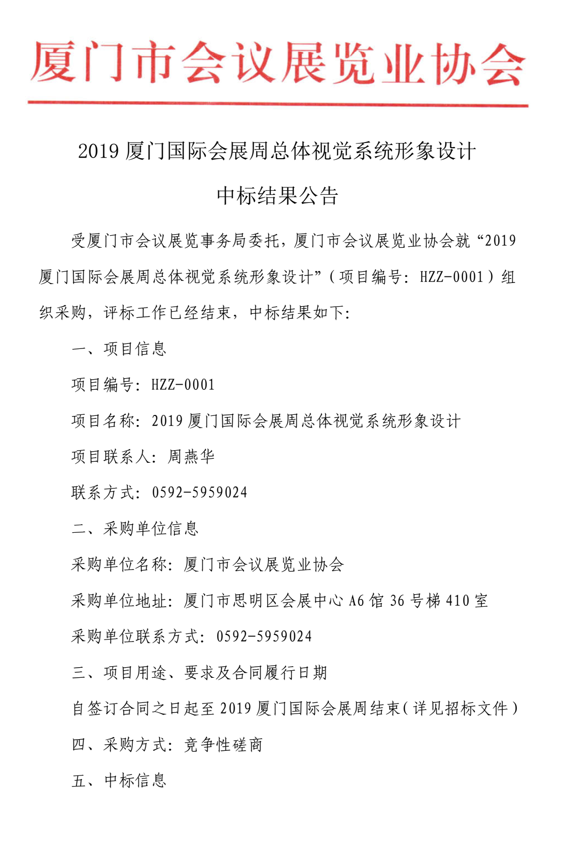 2019厦门国际会展周总体视觉系统形象设计中标结果公告